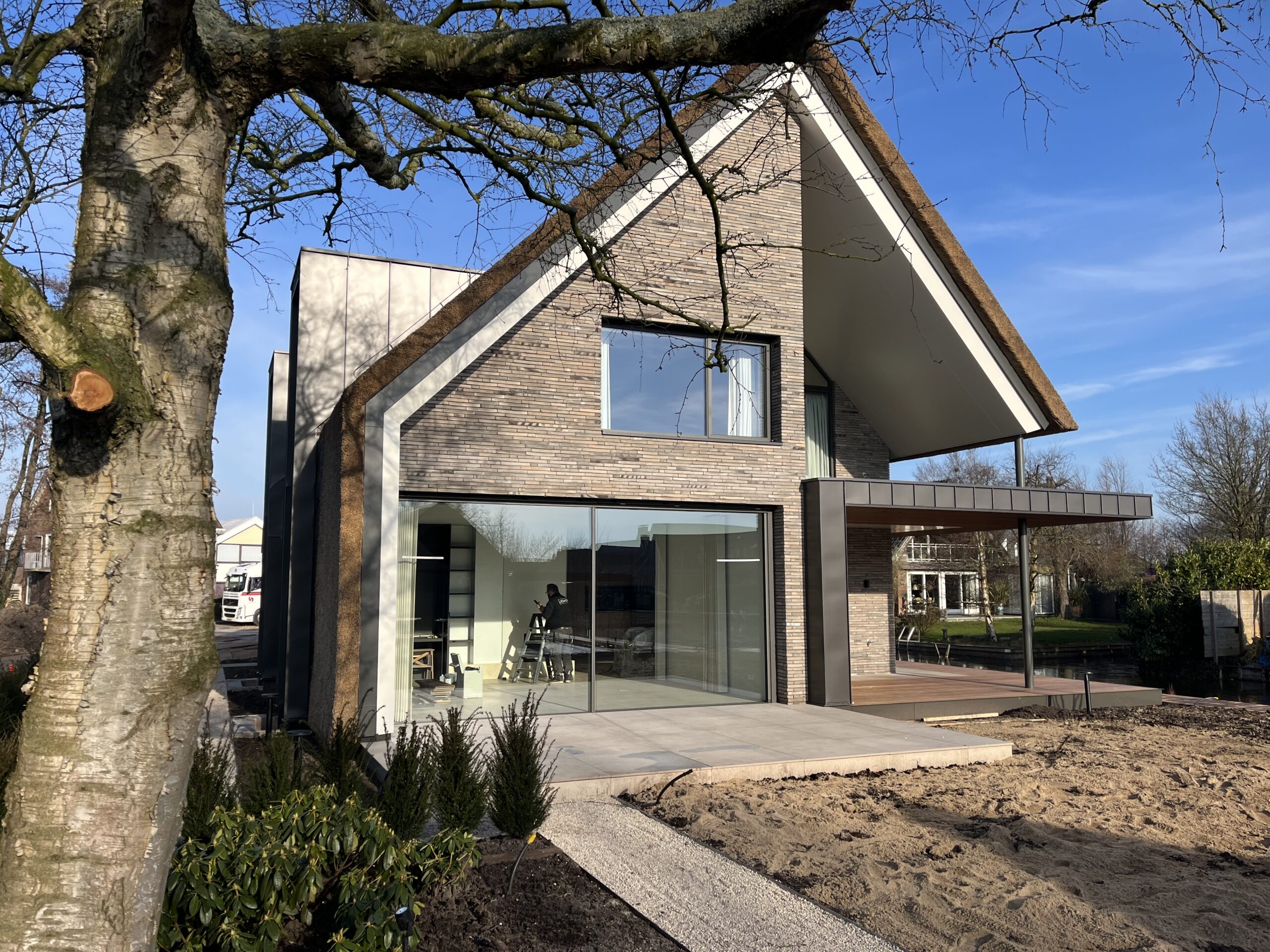 Op een prachtige locatie aan het Zuideinde in Nieuwkoop staat deze royale, onderkelderde villa met bijgebouwen. Voor de start van dit project gaan we terug naar 2021….onze opdrachtgever had dit langgerekte perceel met bestaand gedateerd woonhuis aangekocht…..na een leuke kennismaking groeide dit uit tot een gehele opdracht voor het ontwerpen van de villa en het engineeren en begeleiden van het gehele project in uitvoering. Een schitterende opgave en reis die we samen zijn aangegaan.